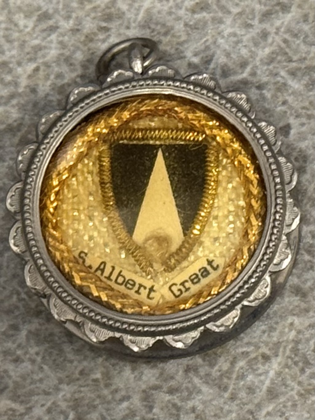 Three felt banners celebrating the 50th Anniversary of the founding of the Province of St. Albert the Great in 1989.